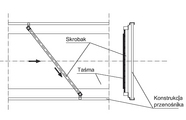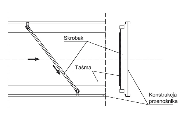 Zgarniacz typu TPs - J stosowany jest do oczyszczania wewnętrznej strony taśmy dolnej z resztek materiału transportowanego. Przewidziany do oczyszczania taśmy przenośnika przed bębnem zwrotnym lub w dowolnym miejscu przenośnika. Stosowany w przypadku braku miejsca na zastosowanie zgarniacza pługowego typu TPS -V (małe odległości pomiędzy taśmą górna i dolną). Zgarniacz ten montowany może być także na przenośnikach rewersyjnych.